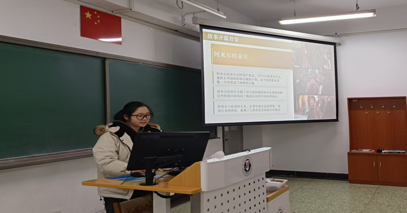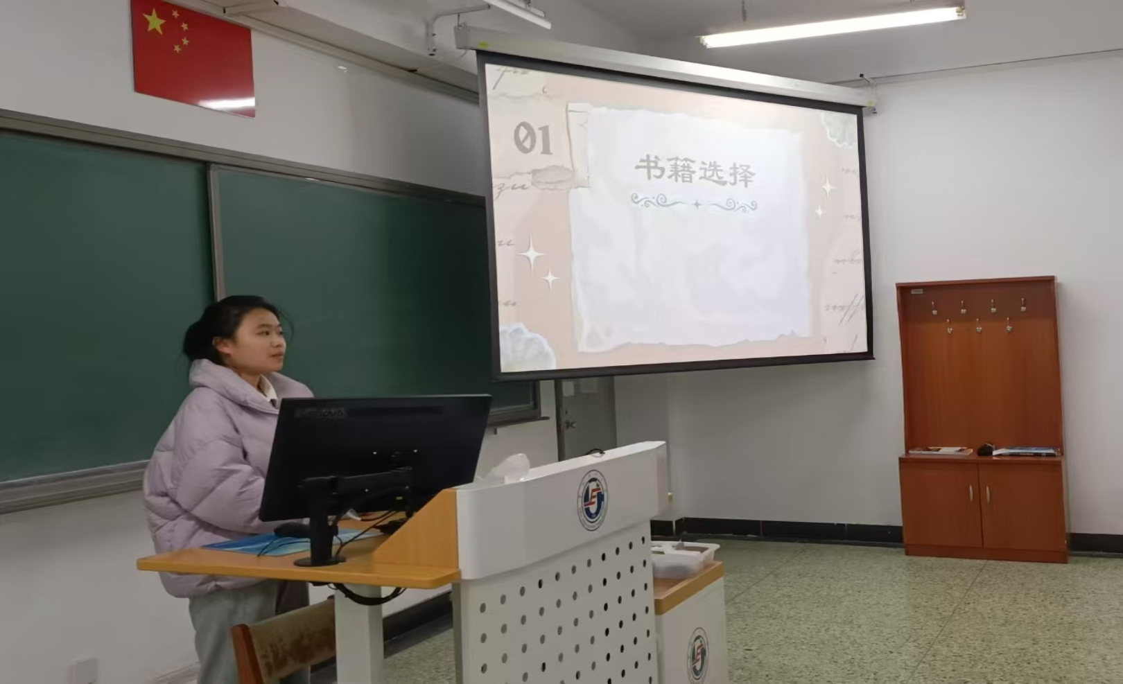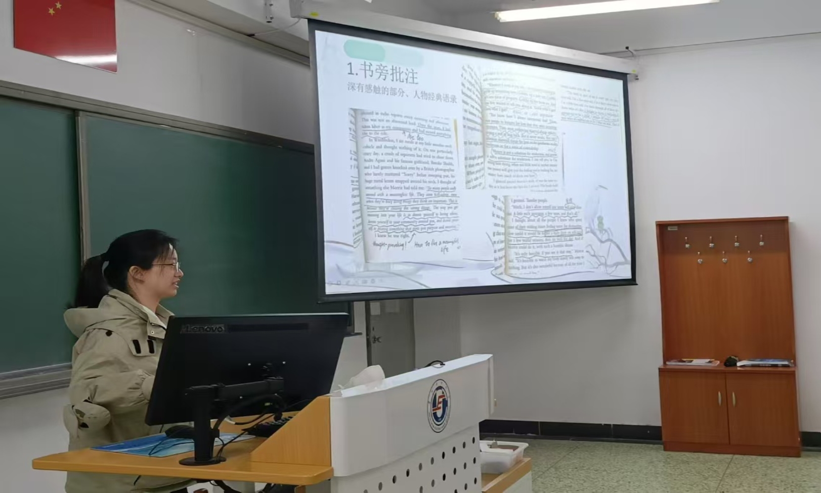 王艺潼着重讲解如何高效阅读。她分享了自己的阅读方法:首先快速浏览全书以了解大致内容;其次精读重点章节并做好笔记;最后回顾全书以整理思路。她还强调了做笔记的重要性,并建议同学们在阅读过程中记录下生词、短语以及自己的感悟。这些笔记将成为撰写读书报告的重要素材。