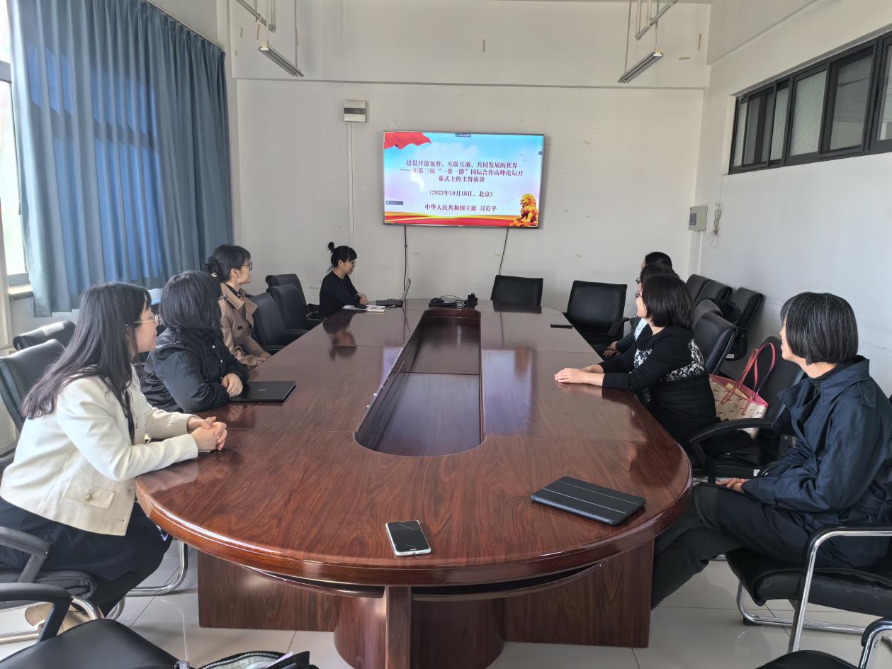 为纪念“一带一路”倡议问世十周年,跟进学习习近平总书记在第三届“一带一路”国际合作高峰论坛开幕式上的主旨演讲精神,大英一党支部结合自身专业特点,于2023年10月26日中午开展了习近平“一带一路”主旨演讲内容双语深入研读活动。会议由党支部书记陈蓓同志主持,大英一在岗教师全员参加。
