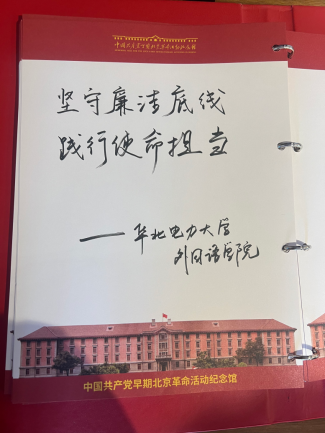 为深入学习贯彻《中国共产党纪律处分条例》, 扎实推进党纪学习教育,6月4日下午2点,外国语学院研外2373党支部、研外2374党支部以及大英一教研室党支部师生党员齐聚一堂,共同前往北京大学新文化运动纪念馆(北大红楼),开展主题为“坚守廉洁底线,践行使命担当”的师生党支部共建活动。