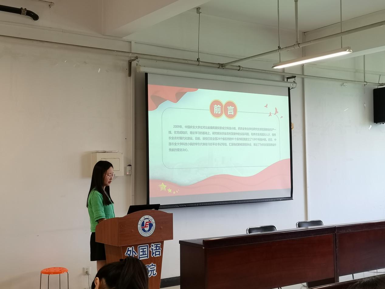 为了深入学习贯彻习近平新时代中国特色社会主义思想,加强青年思想建设引领,2023年5月22日,外国语学院本科生与研究生党支部在主C606开展专题学习,学习内容为习近平总书记给中国农业大学科技小院学生的回信(以下简称“回信”),会议由研究生党支部组织委员杨玥主持。
