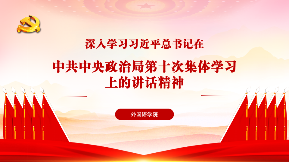 为深入学习贯彻党的二十大精神,落实党史学习教育常态化长效化的工作要求,外国语学院英语专业教研室党支部联合外国语学院研究生党支部于2023年12月12日13时30分,在主c701集体学习了《习近平总书记在中共中央政治局第十次集体学习上的讲话》,会议又英语专业教研室主任郑蓉颖主持,英语专业教研室支部党员及外国语学院研究生支部党员共计19人参加了学习。