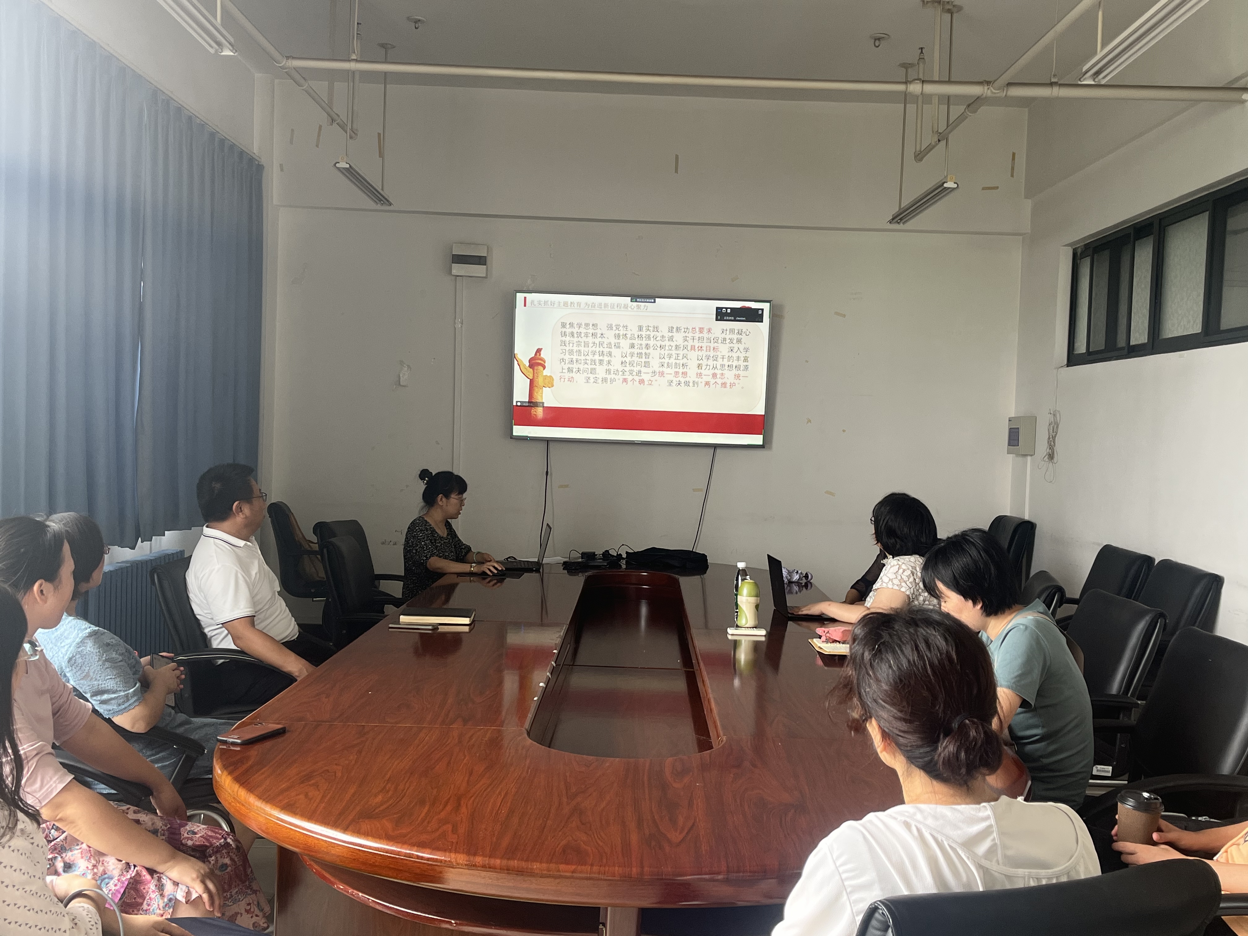 为深入学习贯彻习近平新时代中国特色社会主义思想主题教育专题,9月5日中午,大英一党支部在主楼C501召开新学期第一次组织生活会。本次会议聚焦习近平总书记有关党的建设重要指示和讲话,深刻领会主题教育的丰富内涵和实践要求,结合总书记关于“建设教育强国”的重要讲话,检视差距不足,开展批评和自我批评。