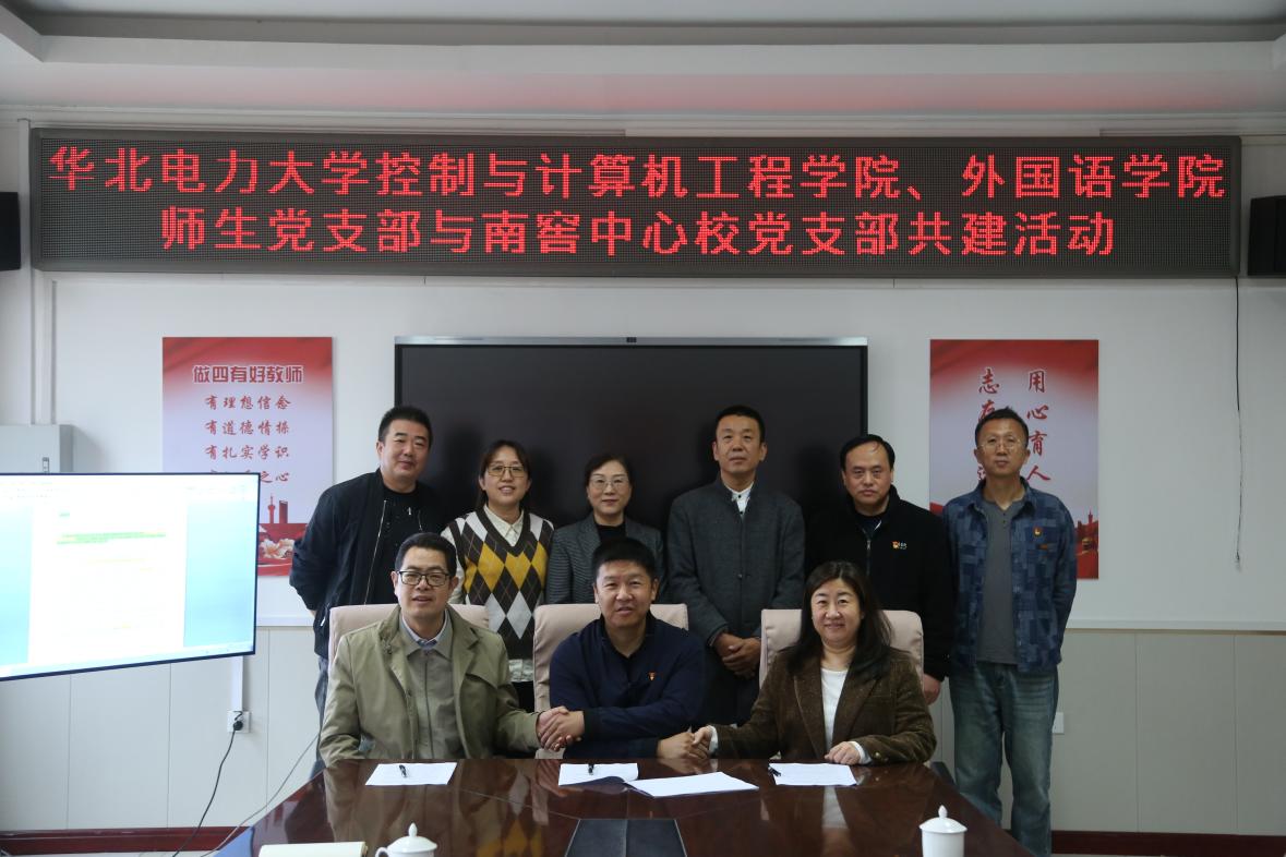 为推进房山区水灾善后救助工作,充实学校基层党建和学生实习基地建设,2024年10月18日上午10时在房山区南窖乡中心小学,外国语学院、控制与计算机工程学院与南窖中心小学签订党建共建协议。外国语学院党委副书记马冬、控计学院党委副书记耿晔、辅导员李哲雅、支教学生闫美旭,与南窖乡副乡长王军、乡教育助理王文月、南窖中心小学党支部书记王希栓及支委共同参加。活动由学校人事处副处长兼南窖乡乡长助理王璐主持。