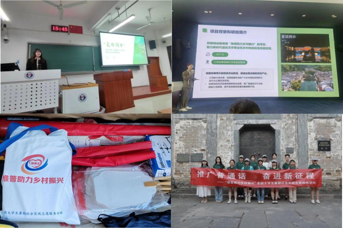 2023年暑期,教育部语言文字应用管理司、共青团中央青年发展部共同主办2023年“推普助力乡村振兴”全国大学生暑期社会实践志愿服务活动。在教育部语用司和学校团委的大力支持下,华北电力大学外国语学院组建“夏语润乡”暑期推普实践团,于8月1日前往江西省景德镇市浮梁县瑶里镇开展为期一周的推普系列活动。