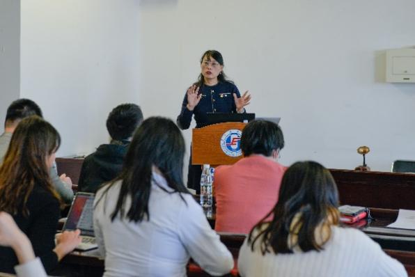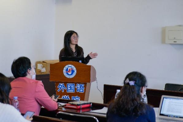 四位研究生党员完成相关专业讲解之后,外国语学院党委宣传委员、英语专业教研室支部书记兼主任郑蓉颖对相关内容进行了点评。她指出,德里达的解构批评与结构主义相比较,是一种更倾向于话语性的文论研究,注重文本的力量,力图还原事物真实面目。埃德加·斯诺在书中消解了西方资本主义传统视角,向外界提供了解读中国革命可信的第三视角,展现了埃德加·斯诺本人对中国革命的同情之心,深刻理解本书有助于理解毛泽东同志曾说的“斯诺是中国人民的老朋友”中饱含的真挚深情。