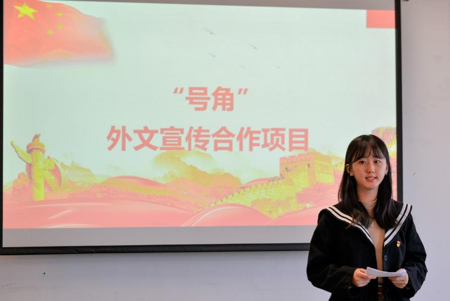 在本次主题党日活动和学习的最后,主持人宣读了学校党委宣传部和外国语学院党委正式确立开展“号角”外文宣传合作项目的消息,在学校党委和学院党委的领导下,外国语学院师生党员必将立足专业优势,彰显电力特色,充分发挥“外语+专业”的学科优势,共同完成讲好“中国故事”、讲通“中国道路”、讲懂“中国文化”的使命担当。