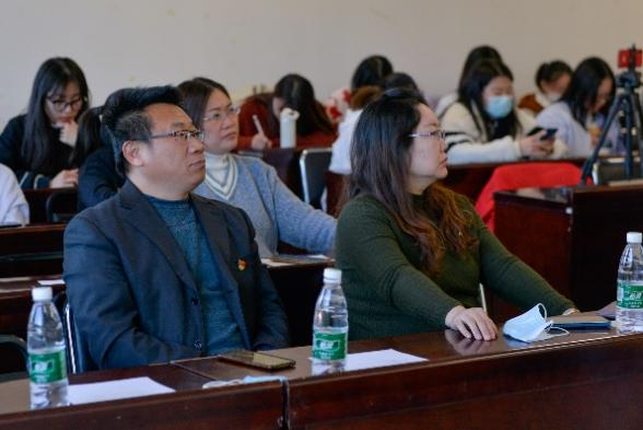 学校党委宣传部副部长卜叶蕾、学校庆祝建党100周年暨党史学习教育巡回指导第三组联络员、科研院副院长张凯以及马新科、学校党委学工部(学生处)学生教育科赵莹彤,与外国语学院党委书记于喜海、院长康建刚,以及学院党委理论学习中心组全体老师、本研学生党支部党员代表共同参加。