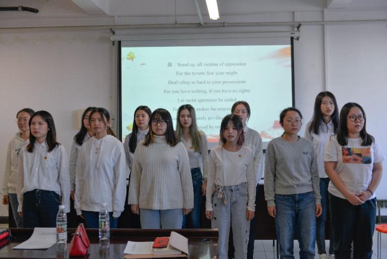 最后,参会全体人员起立,共同合唱了英法双语的《国际歌》。当雄壮有力的国际歌响起时,全体党员在庄重肃穆、慷慨激昂的歌声中再次升华了对于建党百年重要意义的理解。
