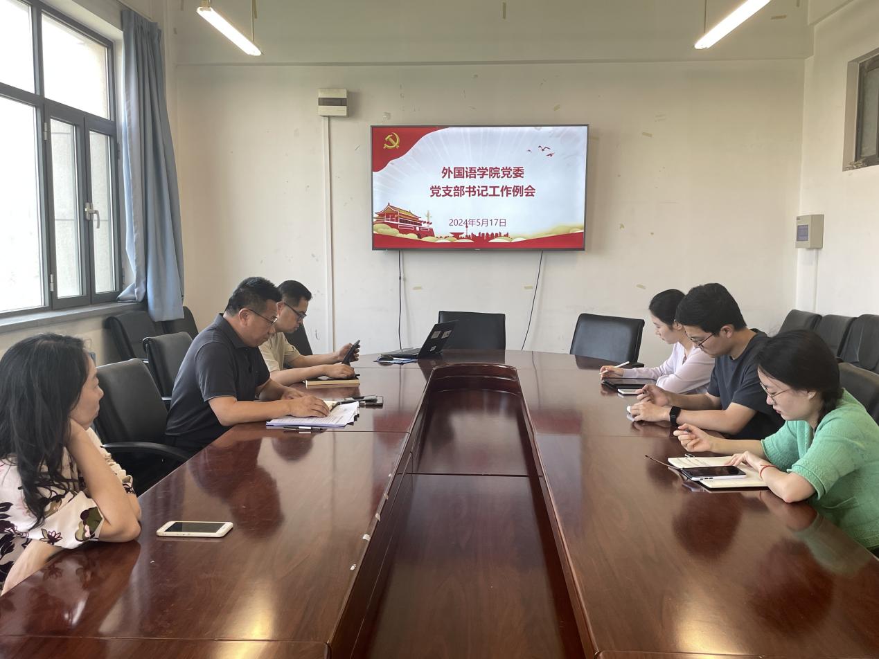 为全面增强基层党组织政治功能和组织功能,深入探索以高质量党建引领高质量发展的工作路径,5月17日下午2点,外国语学院党委于主C501会议室召开党支部书记工作例会。会议由学院党委书记于喜海主持,全体师生党支部书记线上线下共同参会。