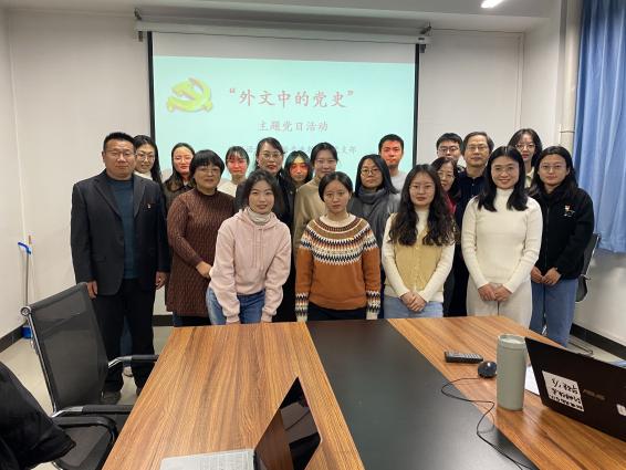 为深入学习贯彻党的二十大精神,落实党史学习教育常态化长效化的工作要求,外国语学院英语专业教研室党支部联合外国语学院研究生党支部于2023年12月12日13时30分,在主c701召开“外文中的党史”主题党日活动。