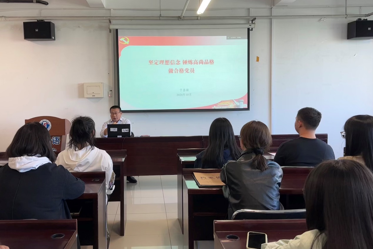 为深入贯彻党的二十大及二十届三中全会精神,进一步落实新时代党的建设总要求,10月8日中午12:40,外国语学院党委第58期入党积极分子培训班在主楼C606会议室开班。学院党委书记于喜海出席开班仪式并讲授第一堂党课,外国语学院28名入党积极分子参加培训。