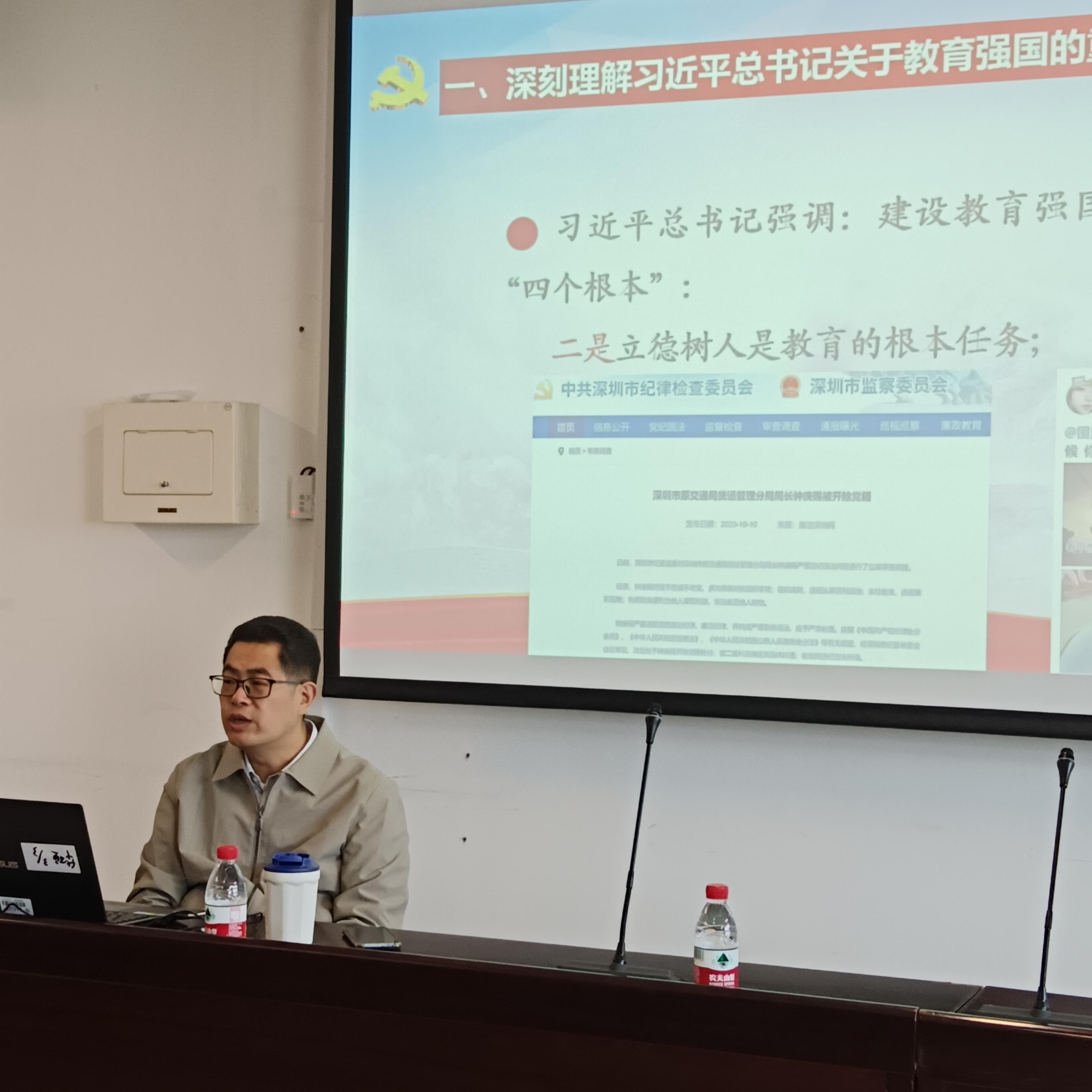 他围绕深刻理解习近平总书记关于教育强国的重要论述、建设教育强国面临的机遇和挑战、做有理想、敢担当、能吃苦、肯奋斗的时代新人三个方面展开。