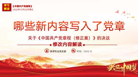 根据华北电力大学党委组织部的工作要求,2022年12月1日中午12时, 外国语学院英语专业教研室党支部召开党支部大会,学习新版《中国共产党章程》内容,学习《中国共产党党徽党旗条例》,对支部工作进行问题查找及整改意见征集。会议采用腾讯会议方式进行,由支部书记郑蓉颖主持,全体支部党员参加了会议。