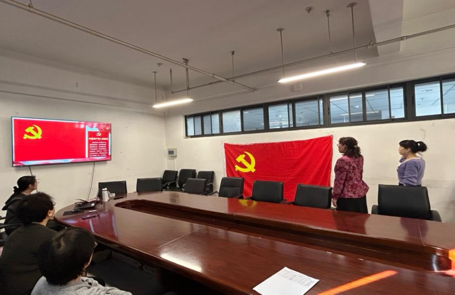 2025年1月7日下午12:30,外国语学院英语专业教研室党支部在主C501召开本学期最后一次党员大会,为预备党员肖瑶举行入党宣誓仪式并学习党的二十届三中全会精神。 会议由支部书记郑蓉颖主持,学院党委书记郑凯以普通党员的身份参加了会议。