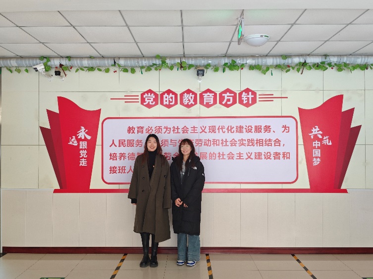 2024年11月1日,外国语学院研究生党支部书记刘沐子与支部成员闫美旭同学再次来到南窖中心小学,与南窖中心小学党支部成员和校领导进行深入交流。双方就红色文化与外语教育相结合,提升孩子们的综合素养进行了探讨,并就未来合作方向达成共识。