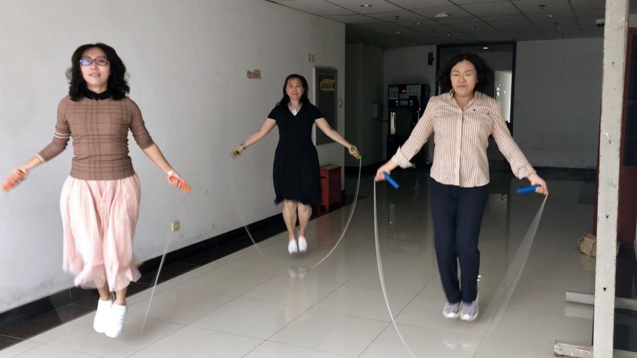 9月19日,分工会分别组织了大英一教研室、大英二教研室、翻译教研室和行政分工会小组集中活动。活动当日,主楼C座六层的楼道里热闹非凡,翻飞的跳绳在老师们的手中翩翩起舞。大家摇动一根根彩绳,每个人都一显身手,不时展示花式跳法,不甘示弱从头再来……楼道里一片欢笑声。