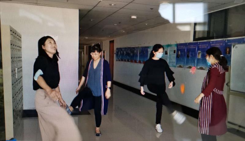 为丰富教职工业余文化生活,增强教职工身心健康,10月20日,外国语分工会在主楼C座6层楼道举办踢毽活动。