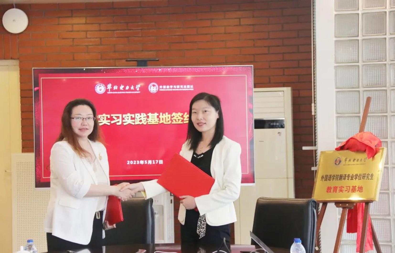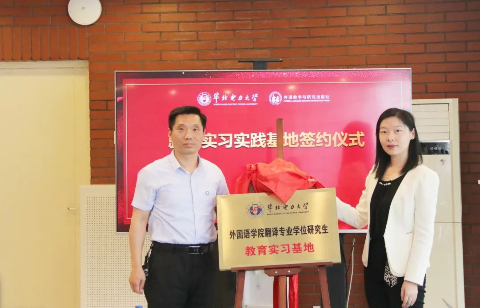 双方围绕协同培养国际化人才展开探讨、交流。学院院长康建刚代表学院与外研社建立“华北电力大学外国语学院翻译专业学位研究生教育实习基地”;学院副院长刘辉代表学院与外研社签署就业实习实践基地合作协议。