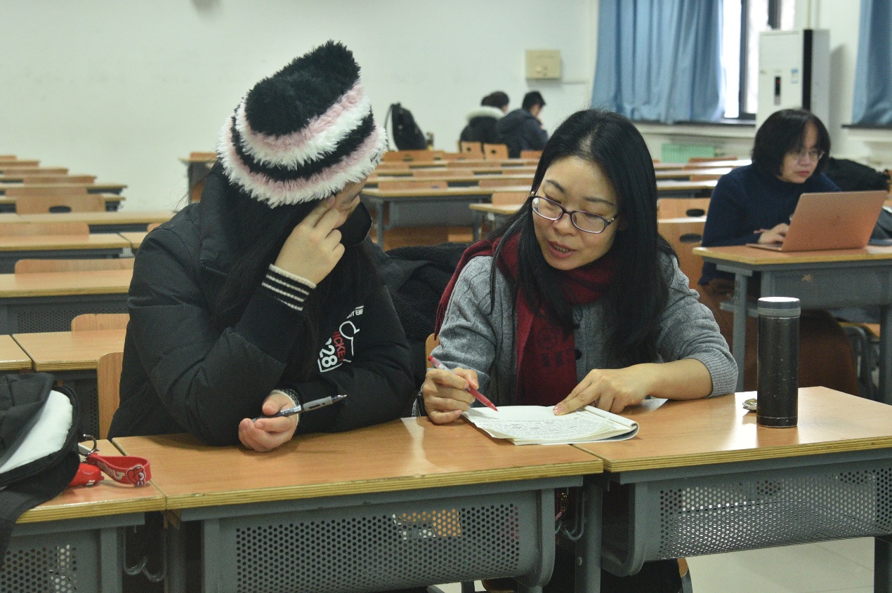 欢迎仪式结束后,辅导老师立刻开始了耐心细致的写作指导,她们结合四六级写作评分标准指出学生习作中的常见错误,让学生了解写作难点,通过指导写作方法,讲解语言修改、选材分析的写作技巧。