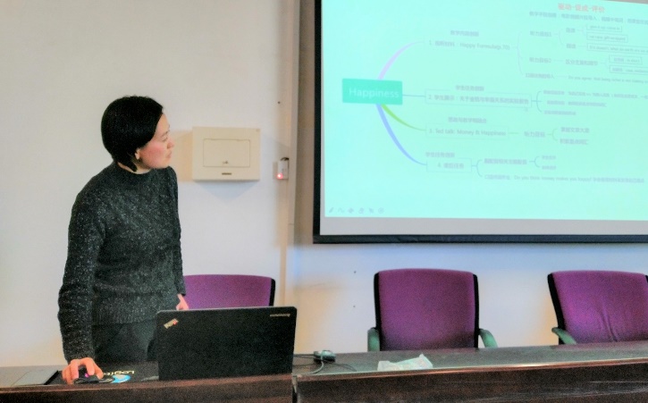 张婷的教学是建立于详细的学情分析上。针对班级人数较多,学生水平不均衡等问题,张婷老师指出需要有开展适合大班教学活动,并提出产出导向法,充分利用现代的信息和手段,调动学生的积极性。在重点难点上形成“驱动-促成-评价”模式,并取得显著成效。