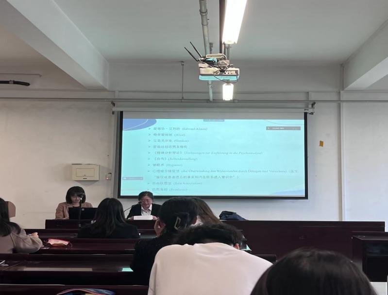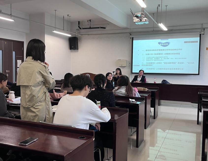 在讲座提问和交流环节,外国语学院青年教师王珏对本次讲座进行简要评议。她指出,赵教授的讲座十分具有启发性,文学作品能够揭示心理学研究的局限和盲区,并用审美的方式加深我们对人类心理问题的认识。随后,外国语学院青年教师韩嫣以及华电外国语学院学生与赵教授就作品中对战争的追责和对父母追责的关系,对精神分析法的辩证思考以及主人公是如何突破“俄狄浦斯情节”等问题展开了热烈的讨论。最后,赵教授分享了她所主持的国家社科基金重大项目“西格蒙德·弗洛伊德全集德译汉与研究”的阶段性成果和研究心得,激发了同学们对文学学习的热情。