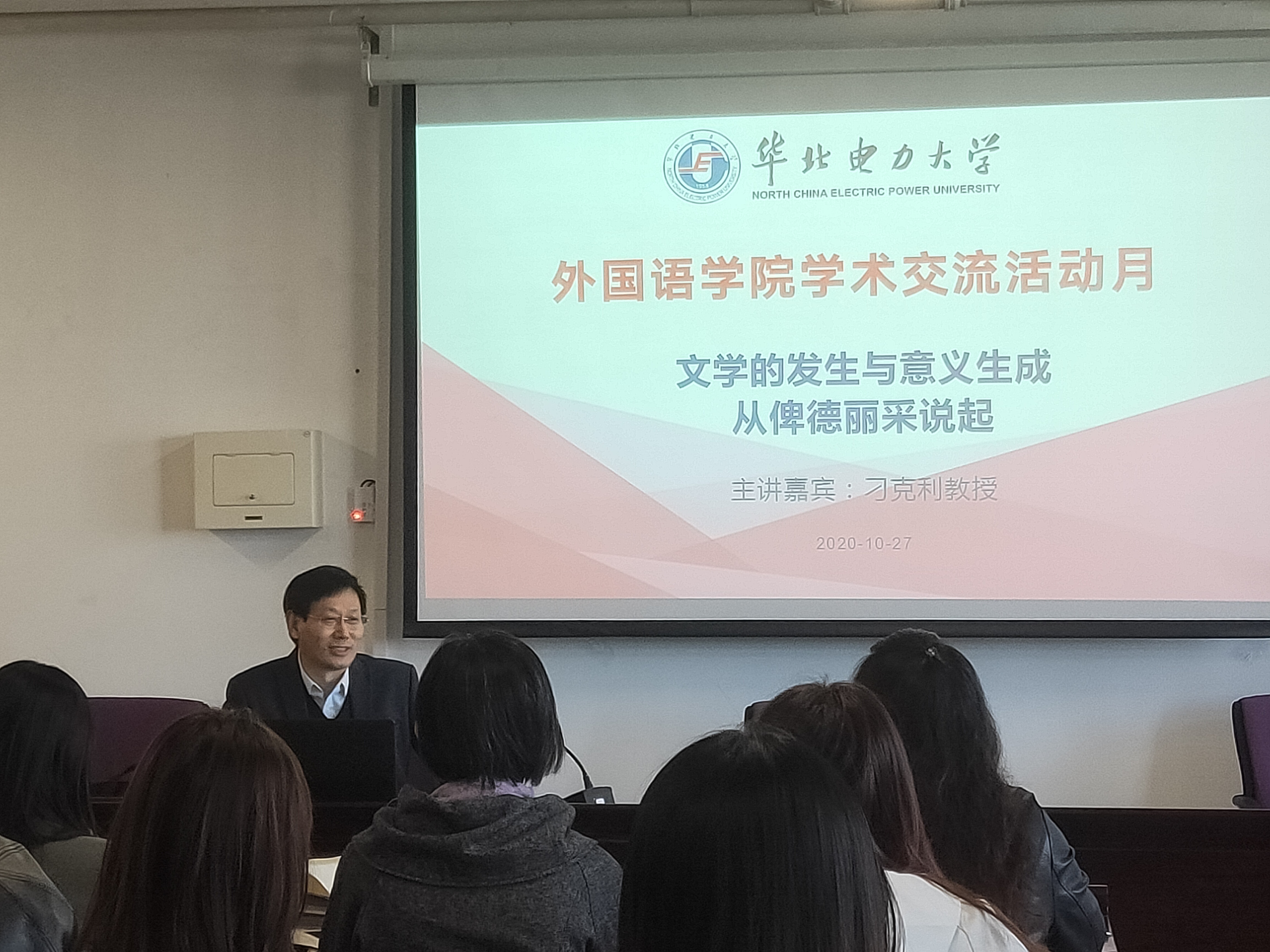 10月27日,中国人民大学外国语学院刁克利教授做客我院,就“文学的发生于意义生成--从俾德丽采说起”这一话题为老师和同学们带来了一次别开生面的学术交流。学院副院长刘辉教授、文学方向各位老师参会。