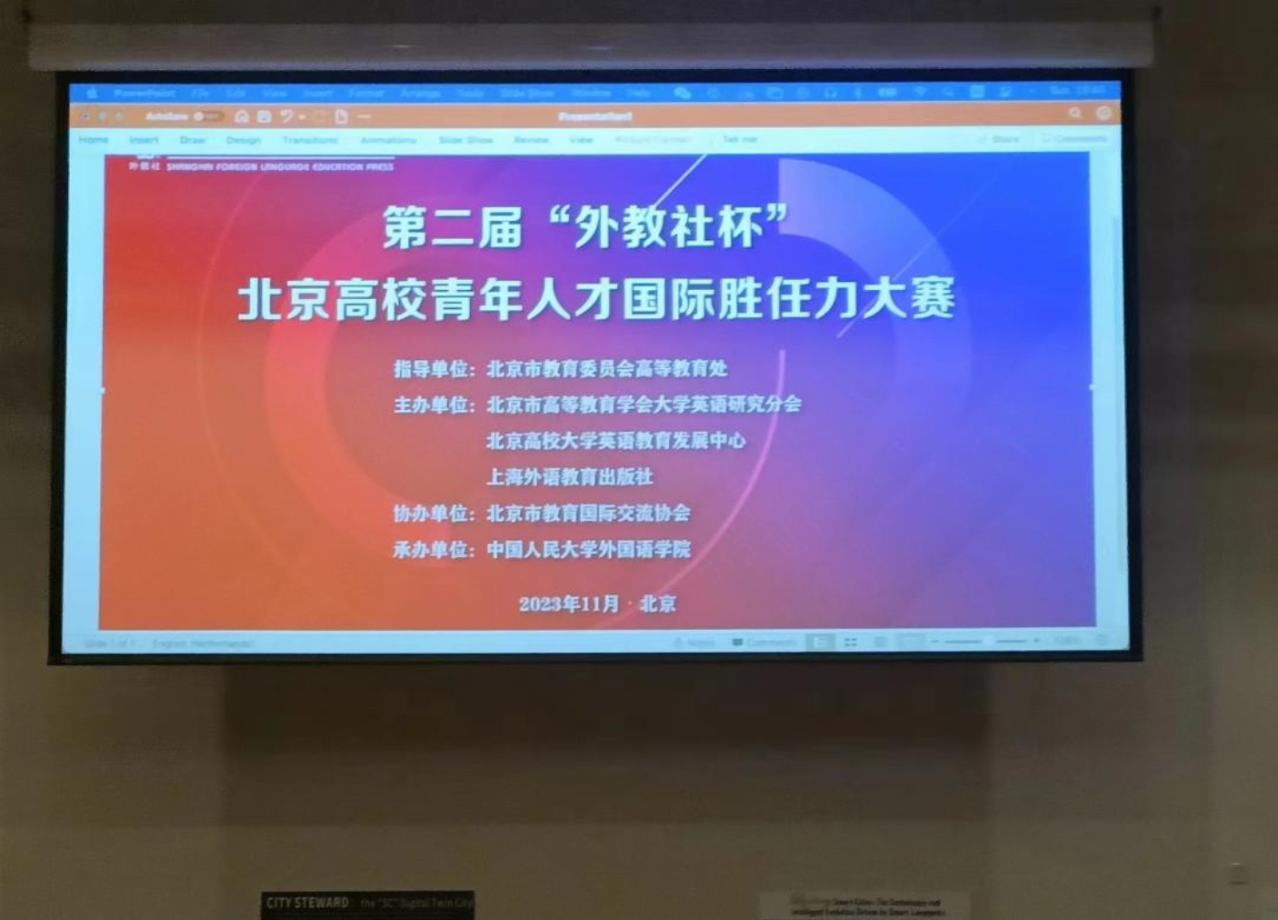 外国语学院高度重视该项赛事,工创中心联合外国语学院共同举办华北电力大学北京青年高校人才国际胜任力校级评选大赛。针对大赛具体情况,学院制定了相应筹备方案,及时进行推广宣传,吸纳全校优秀参赛作品,安排专业老师为参赛团队提供指导,并遴选出对大赛主题要求理解深刻、外语综合能力强的团队参加北京市市赛。经专家组评审,校内竞赛评选出一等奖作品一组,该团队代表华北电力大学参加第二届北京高校青年人才国际胜任力大赛省赛。