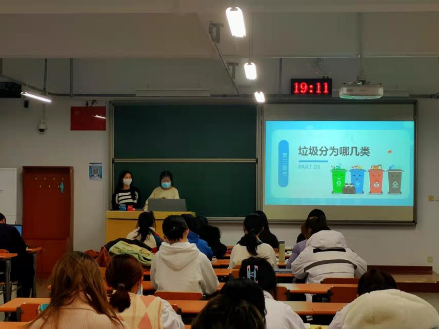 同日外国语学院还举办了垃圾分类相关知识的宣讲。参加本次宣讲活动的是全院师生代表,学院向师生代表宣讲了垃圾分类的相关知识,着重强调垃圾分类同样要反思从源头上减少垃圾,在生活中督促自己。相信在此次宣讲后,同学们一定能对垃圾分类有一个更加深刻的认识,其进程也能够更加顺利地推行下去。