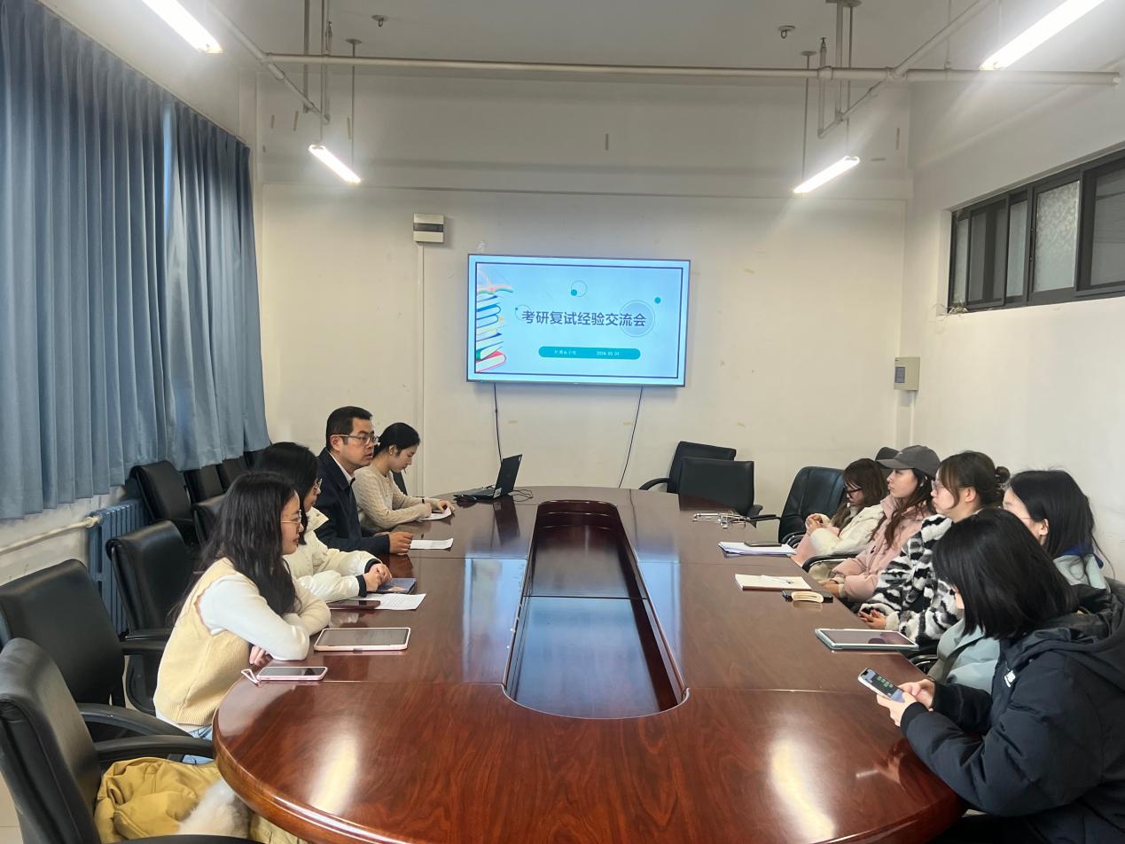 为帮助各位考生积累复试经验、提高备考效率,3月4日下午3点,外国语学院在主楼C501会议室举办考研复试朋辈经验交流会。本次交流会邀请了学院党委副书记马冬、团委书记王悦、学院研究生代表杨玥、伏鑫悦共同分享和指导考研复试与调剂的宝贵经验,会议由王悦主持。