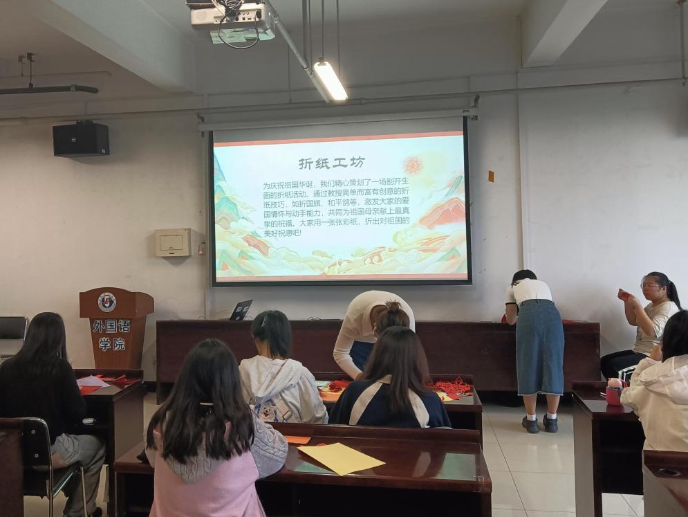 山河锦绣,国盛家兴。9月28日下午14时,外国语学院于主礼堂前及主楼C606举办了“共庆国庆,快闪献礼”主题活动。此次活动不仅是为了欢庆国庆佳节,更旨在激发同学们深厚的爱国情怀,增强其民族自豪感与集体荣誉感,凝聚青春力量,共筑中国梦。