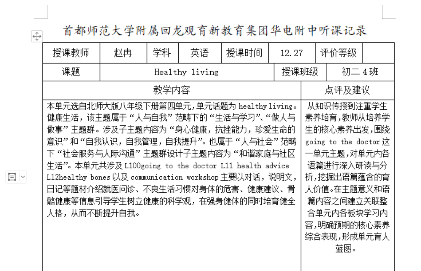 在课堂听讲和作业批改等实习活动中,同学们进一步以实习教师的身份接触了初中阶段的教学工作,通过对课堂管理、教学模式方法、知识讲解与复习方式的观摩与学习,深入学习了如何成为一名合格、优秀的初中英语教师。