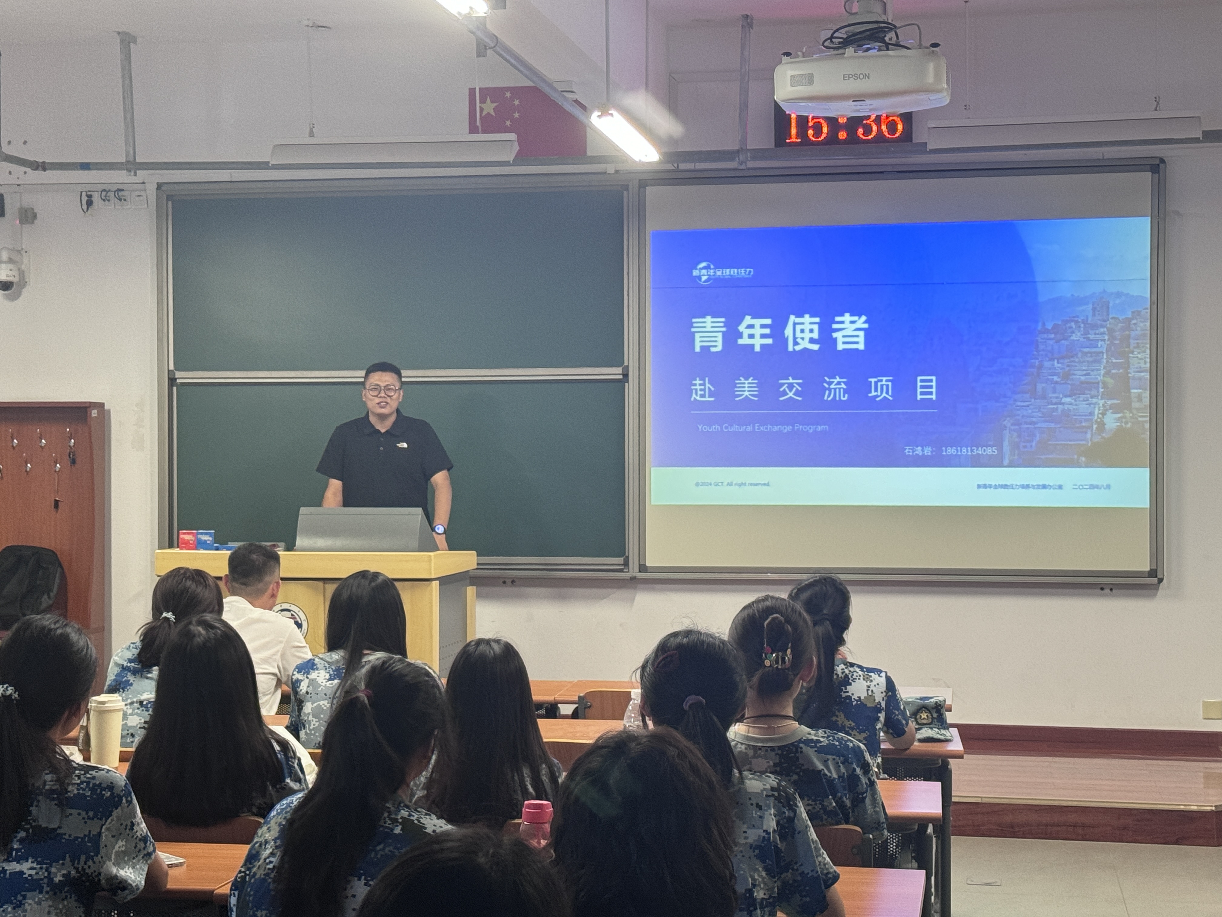 辅导员陈科锦作开场介绍,指出在这个充满机遇与挑战的时代,国际化教育不仅是知识的跨越,更是视野的拓宽与文化的交融,拥有国际视野和跨文化交流能力已成为未来人才不可或缺的核心素养。青年使者赴美交流项目是学校教务处为学生搭建的一座连接世界的桥梁,鼓励大家勇敢走出国门,将中国的声音、中国的文化传递给世界。