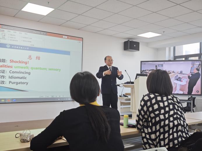 王泉教授结合自身研究经历,从论文选题、论证、写作、以及投稿和修改四方面为我院师生带来了一场详实生动的经验分享。在选题部分,王教授以庄子《知鱼之乐》为引,阐述了学术选题如何体现创新性。他强调,选题除追求创新外,也应具备扎实的研究价值;而衡量价值的标准,可参考领域内具有重要影响力的国际期刊动向。王教授举例指出,当前英美文学研究的前沿方向包括动物研究、后人类主义等,并鼓励师生从也可以从视觉,听觉,嗅觉等多感官视角发掘新课题。在论文论证方面,王教授结合个人已发表论文的实例,归纳出有效增强论证力度的方法,供大家借鉴学习。
