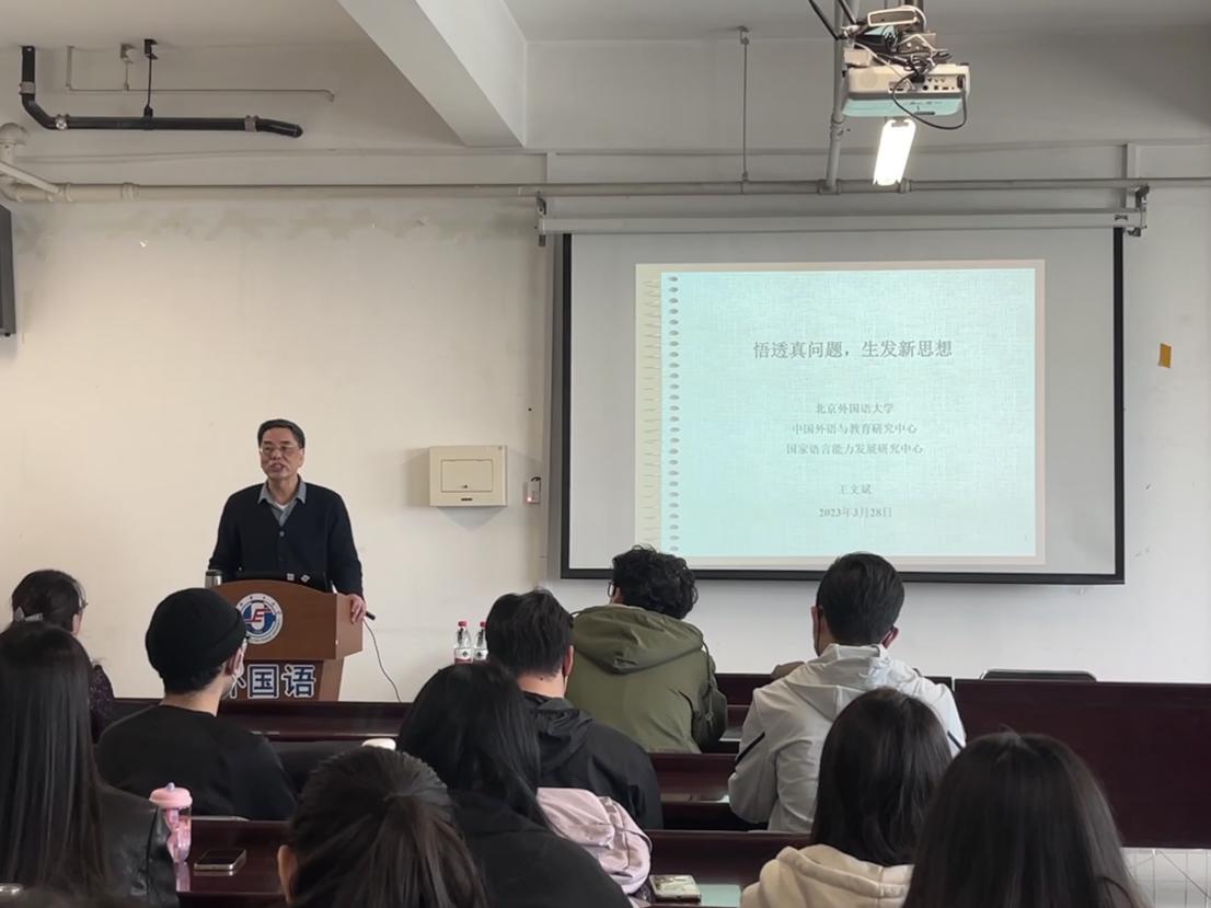应华北电力大学外国语学院的邀请,2022年3月28日下午,北京外国语大学教育部人文社科重点研究基地“中国外语与教育研究中心”主任王文斌教授,于华北电力大学外国语学院开展了题为“悟透真问题,生发新思想”的学术讲座。讲座由外国语学院院长康建刚致辞,外国语学院青年教师崔靓主持。外国语学院教师及硕士研究生参加了本次讲座。