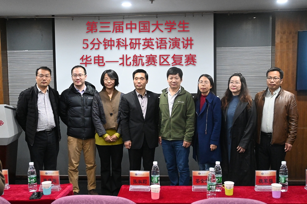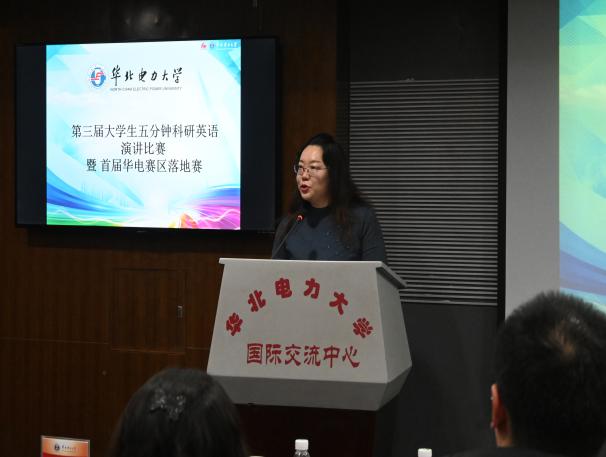 11月10日,“第三届中国大学生5分钟科研英语演讲”大赛暨首届华北电力大学-北京航空航天大学联合赛区复赛落地赛在国际交流中心报告厅圆满举行。外国语学院院长康建刚、工程训练与创新创业教育中心主任杨世关、研究生院副院长张淑莉出席本次比赛.北京航空航天大学外国语学院教师孙梅、姜全红、国教学院副院长魏军强、电气学院教师丁肇豪、外国语学院副院长刘辉、教师高晓薇、韩嫣和金英担任比赛英语评审及专业评审。开幕式由高晓薇主持。