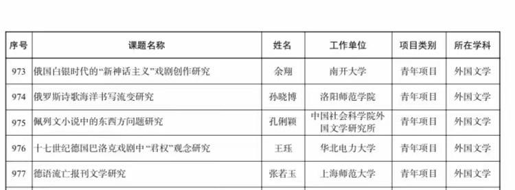 近日,全国哲学社会科学工作办公室公布了2023年度国家社科基金青年项目立项名单。其中,我院王珏老师主持的《十七世纪德国巴洛克戏剧中“君权”观念研究》获得青年项目立项资助。