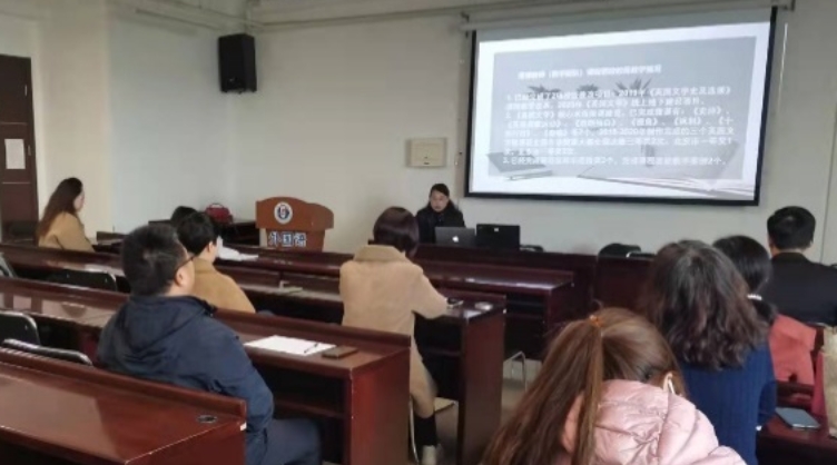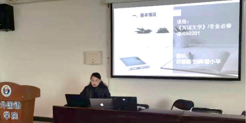 由郑蓉颖,刘辉和骆小平老师组成的课程思政团队在《英国文学》这一门课中教改成果丰硕。本课程特色是创新教学理念,把握课程功能定位,培养学生的复合能力。未来计划是以思政为引领,将思政内容有机的融入进课堂,改进结果评价,增强过程评价,健全综合评价。通过引导学生以马克思主义理论为指导,客观解读文学运动和作品,树立正确的价值观。康院长评审时问道,如何理解师生互为主体?郑老师回答,师生互为主体指的是在设计课程中,老师是课程的主导者,而学生在完成老师布置的任务时,又充分发挥了学生主体性来进行搜集文件,小组讨论等一系列课上课下活动。