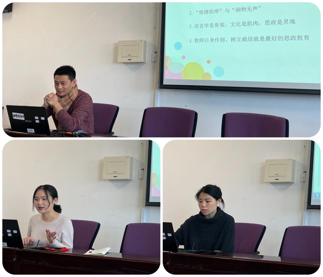 12月29日下午,我院在主C606召开研究生公共外语教研室课程思政研讨会。研讨会按课程语种分类展开,教研室各位老师围绕课程思政建设表达自己的认识、分享自己的经验。会议由副院长刘辉主持。全院教师线上线下共同观摩了研讨会。