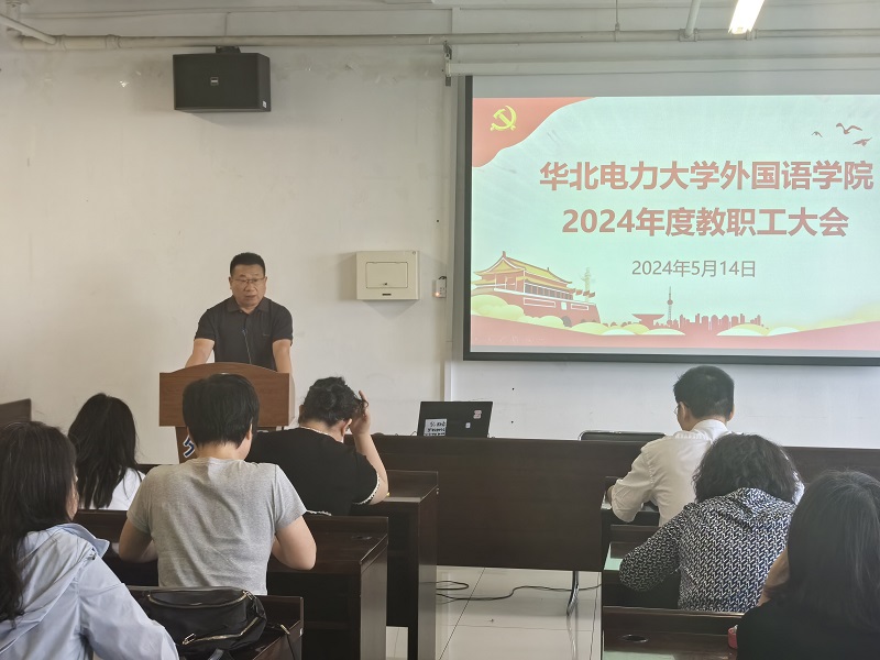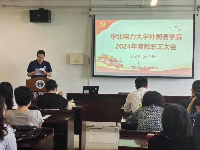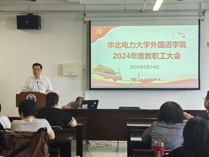 为全面贯彻落实党的“全心全意依靠教职工办好学校”方针,充分发挥教职工主人翁精神,实现民主管理和依法治校的重要作用,5月14日下午14时在主C606,外国语学院召开2024年春季学期教职工大会,全院教职工参加大会。会议由学院党委副书记马冬主持。