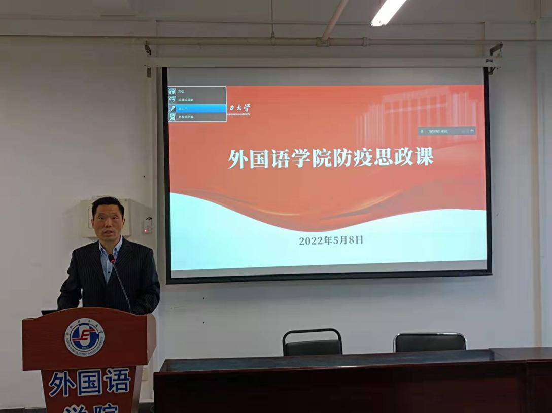 根据学校疫情防控工作要求,5月8日上午10时在主C606,外国语学院院长、党委副书记康建刚为学院全体学生党员、发展对象和积极分子讲防疫思政课。