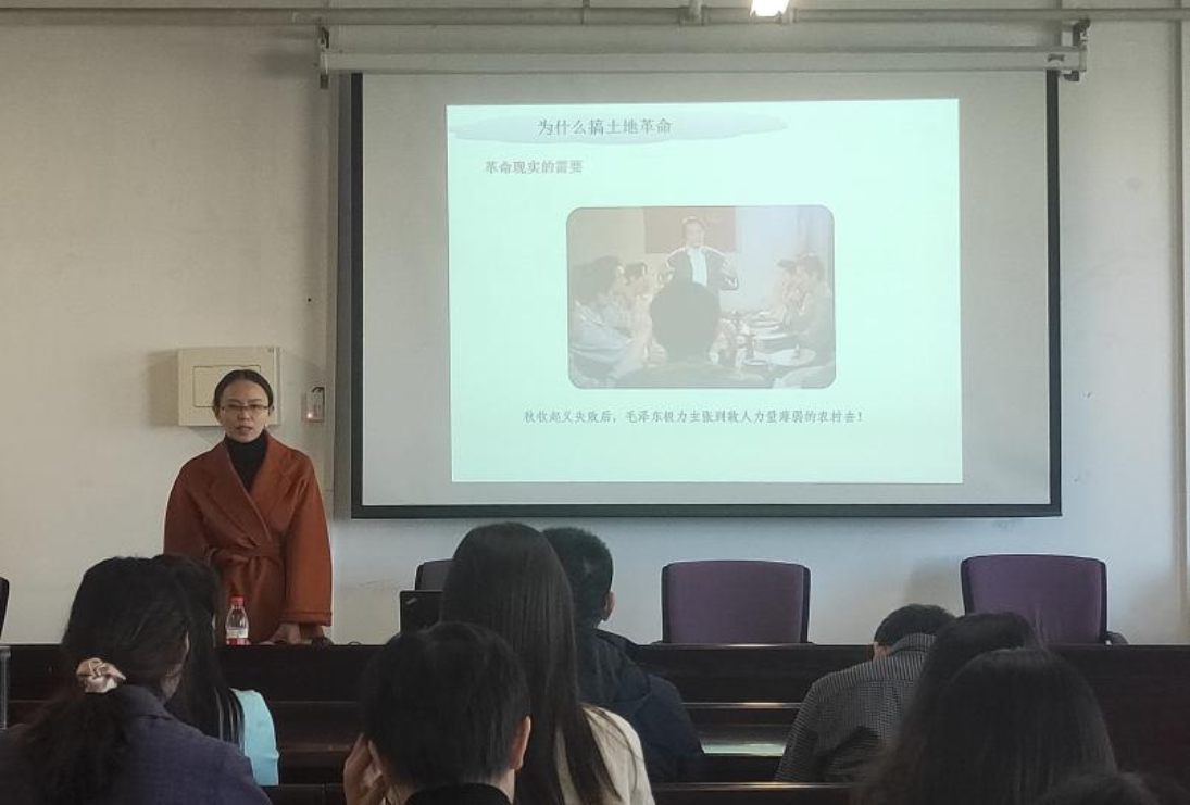 黄晓霓老师的理论授课围绕“土地革命”展开,从“为什么搞土地革命、土地革命怎么搞、土地革命的意义”三个方面,细致地向大家讲述了共产党发展的探索历程,将几十年前的历史再现出来,让大家更直观地了解到党的历史。