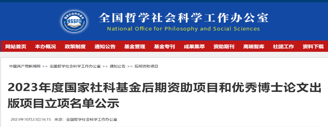 近日,全国哲学社会科学工作办公室正式公布2023年国家社会科学基金年度项目、青年项目和后期资助项目立项结果。经公示,我院获得2个立项,取得立项新突破。