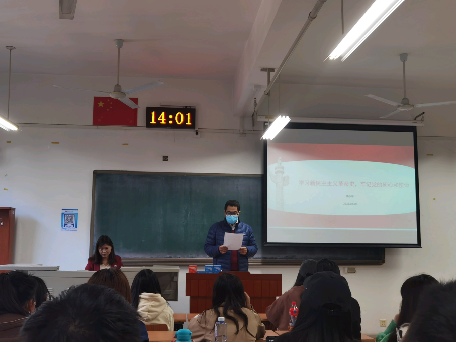 学院党委为继续推进师生党员的党史学习,不断提高师生党员的思想理论水平,2021年10月26日14时在主楼C423,学院党委邀请马克思主义学院骆小平副教授为师生党员代表做了一场题为《学习新民主主义革命史,牢记党的初心使命》的报告会。本次报告会由外国语学院党委副书记马冬主持,学院师生党员代表共同出席。