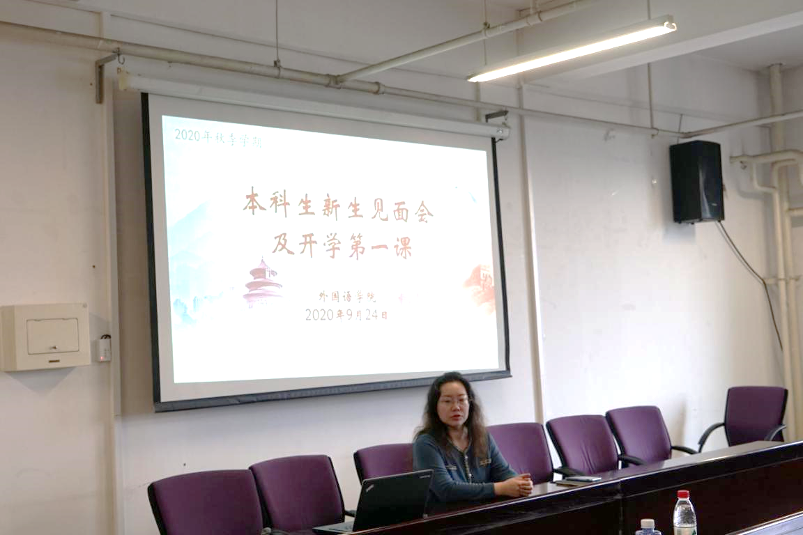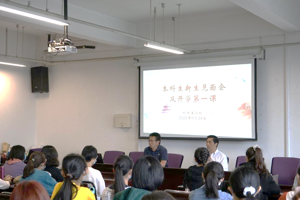 9月24日上午,2020级本科新生见面会暨“开学第一课”在主C606顺利召开。外国语学院党委书记于喜海老师、院长康建刚老师、副院长刘辉老师和团委书记李伯远老师出席了本次见面会。2020级全体本科新生参加了见面会。