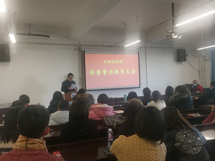 为进一步增强教职工的保密意识,2022年1月6日下午,外国语学院召开保密警示教育大会。学院党政领导出席会议,全院教职工参加会议。
