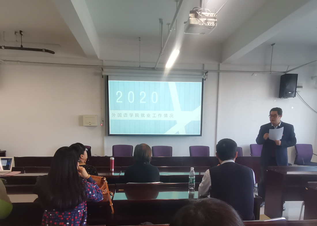 首先,学院团委书记、辅导员老师李伯远向在座的领导和老师具体介绍了2020届、2021届毕业生的相关情况。2020届毕业生在国内升学率方面,相比2019届毕业生有了稳步提高,但受学科专业特点和疫情影响,本科、研究生未就业比例较大;2021届毕业生计划考本校本专业的人数较往年相比有了较大提高,但在当前的疫情下,学生出国深造的意愿受到较大打击,就业心态也以“求稳”为重。为此早在2020年6月底,学院便开始围绕2021届毕业生全面开展了升学、就业指导工作,从教师、学生、就业单位等多方面为学生就业铺平道路。
