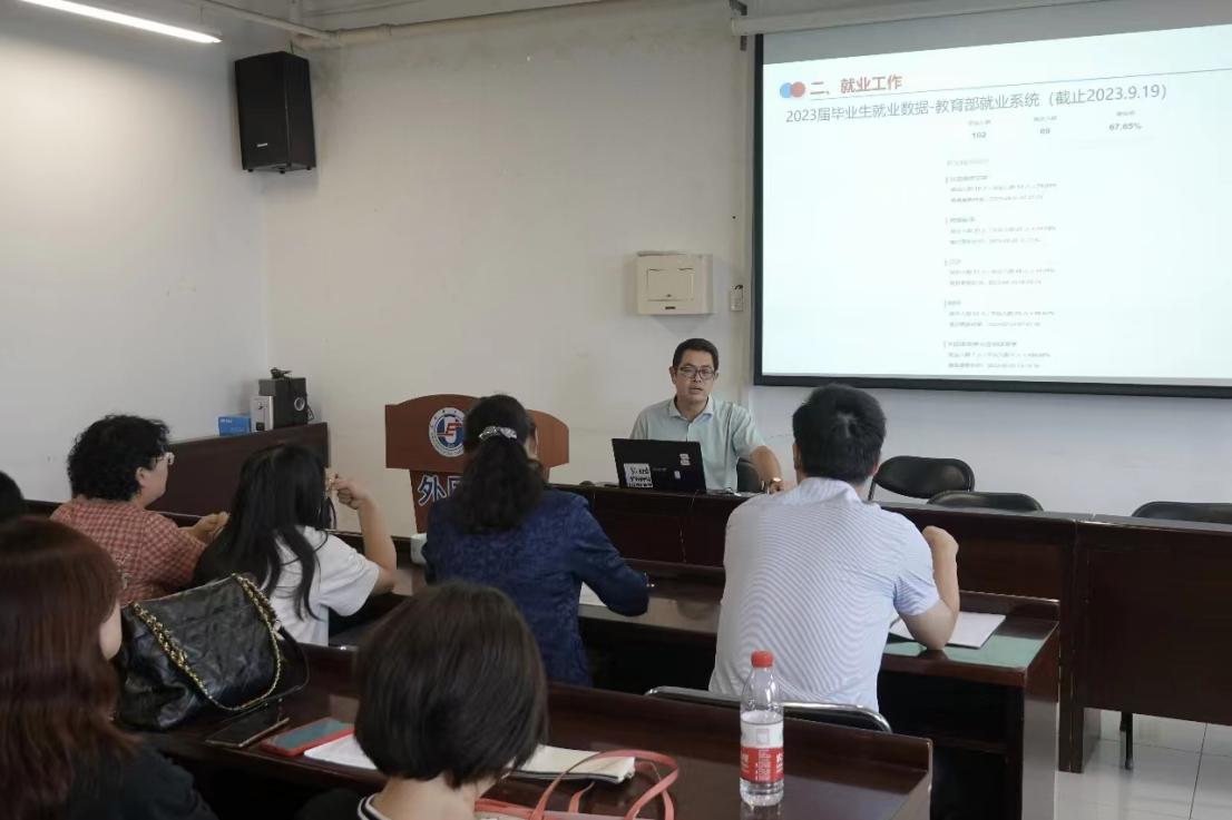 马冬从四个方面对2023学院新学期学生工作中的重点进行强调和部署。首先,他就学院班主任及研究生导师队伍建设的相关文件进行解读,进一步明确两支队伍的岗位职责;接着,他通报了学院2023届最新就业数据情况和2024届毕业生数据,分析就业形势,号召全体教师高度重视并积极参与学院学生就业推进工作,全力做好学生就业服务和指导;随后,他对学院重点关注学生情况进行汇报,提醒班主任和研究生导师要关注学生心理健康;最后,他通过近期学校多起诈骗的案例分析,提醒全体教师要进一步强化学生安全教育管理,做好学生“防诈”“反诈”教育提醒,全力守护学生健康和安全,严防学生受骗上当。