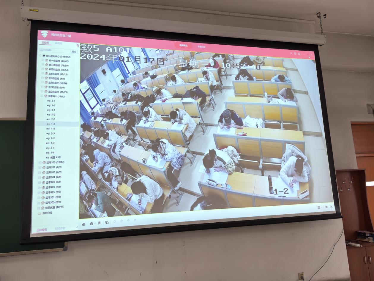 本场考试监考教师只负责组织收发试卷,不进行实地巡查。考试过程中,监考教师可在考场外通过监控查看考场情况,如考生发生紧急情况可以举手示意,监考教师立即前往考场处理。全体考生严于律己、认真作答,顺利完成考试,践行了诚信应考的承诺。