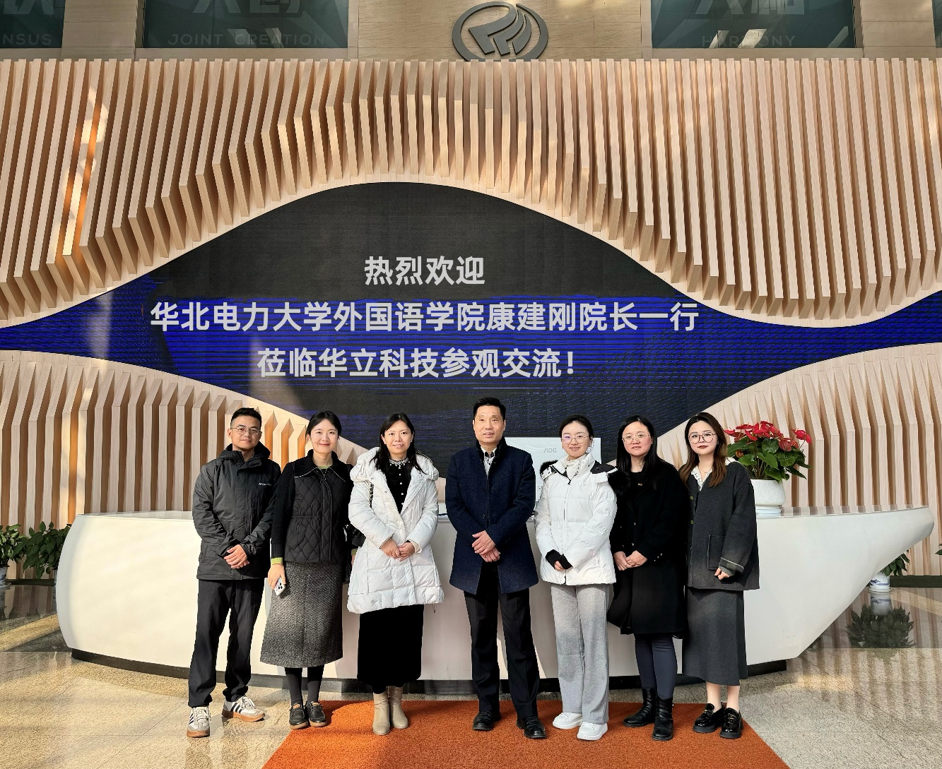在华立科技,调研组参观了企业文化展厅,了解了公司的发展历程、核心业务与全球化布局。在座谈会上,康建刚院长介绍了华北电力大学外国语学院的学科建设优势、人才培养特色与科研发展方向。华立科技对学院复合型外语人才培养模式给予积极评价,双方表示将继续深化合作,形成校企协同育人的常态化联结机制。