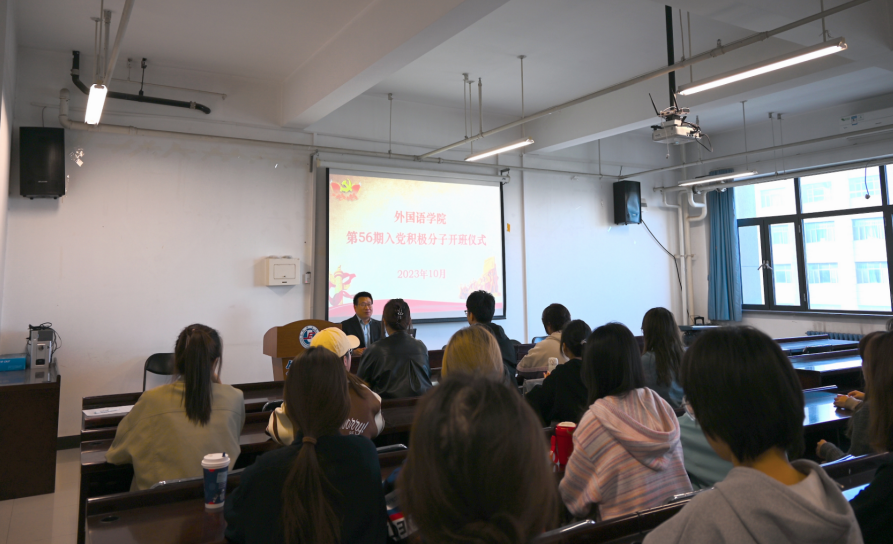 为深入学习贯彻党的二十大精神,进一步提升入党积极分子的政治理论水平,端正他们的入党动机,确保学院党委党员发展质量,10月19日中午12:40,外国语学院第56期入党积极分子培训班在主C606开班。学院党委书记于喜海出席开班仪式并讲授第一堂党课,外国语学院19名入党积极分子参加培训。
